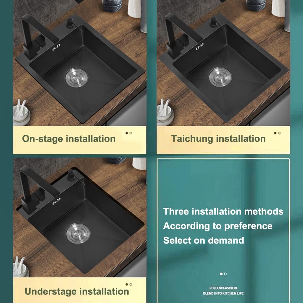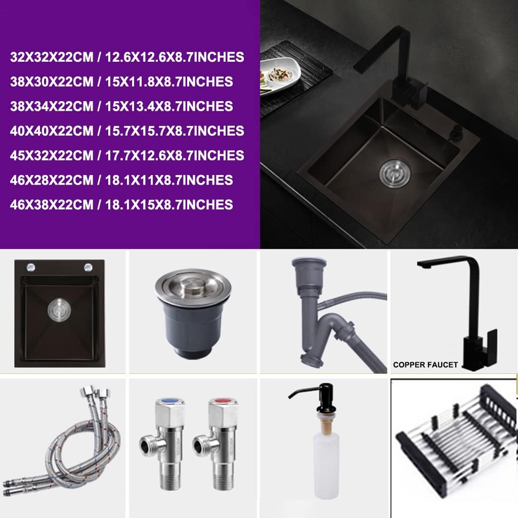 ?This is a black , the material 304 stainless steel, bright and shiny, it not only beautiful but also practical. ?Stainless steel ?Material: Stainless steel ?size: 68x45x22CM , 75X45X22CM 80X45X22CM ?Color: black ?Packing list:Stainless ,pull-out faucet,stainless tray,Telescopic drain basket,opping board,drain pipe,pure water faucet,Cup washer,soap dispenser,Hot cold pipes. ?Installation method: Mounts on countertop, under or in countertop ?Packing: Multiple protection, strict packing. ?Please note We will send faucet all accessories shown pictures. measure by hand, there may be 1-2CM error, please refer to actual product, understand. Due shooting tenology lighting reasons, slight differences color of object you receive picture, understand.