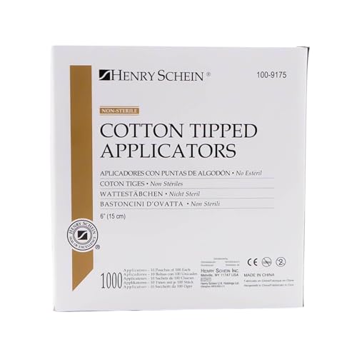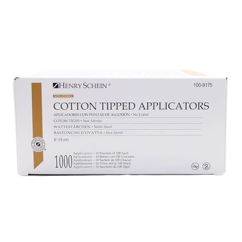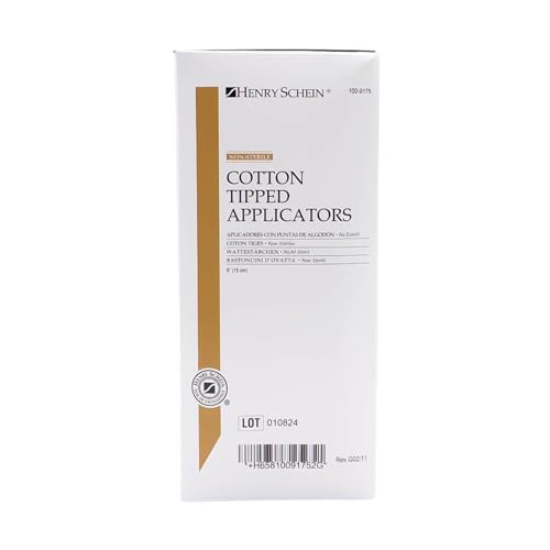 The Cotton Tipped Applicators feature white cotton tips for easy application, each measuring 6 inches in length with a wood handle. They are non-sterile and are packaged in boxes of 1000 applicators, with 10 boxes per case.