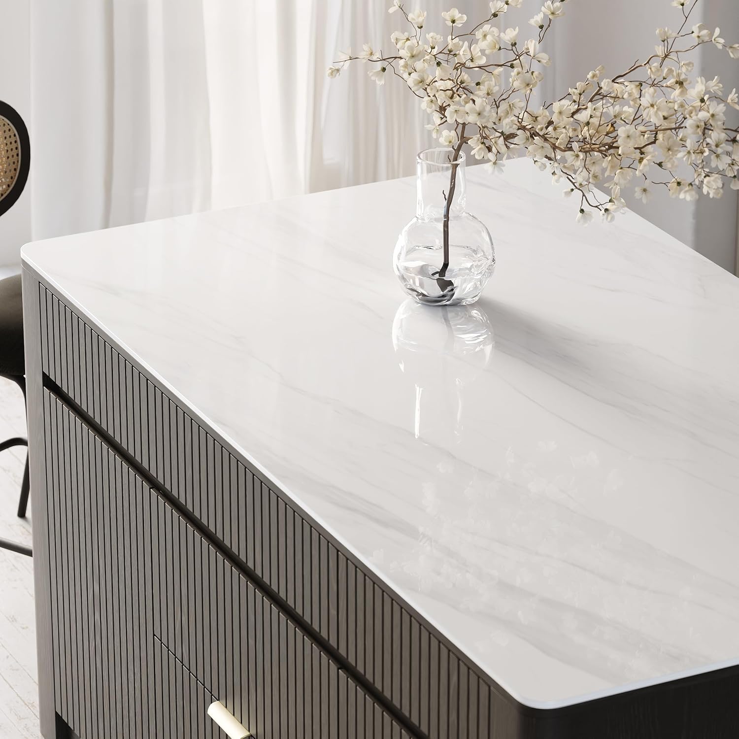 This stunning sintered stone kitchen island combines modern design with practical functionality, featuring a sleek, fluted texture that adds visual interest and a sophisticated touch. Crafted from rubber wood with beautiful ash venner, the washed white finish offers a clean, contemporary look, effortlessly brightening any space.